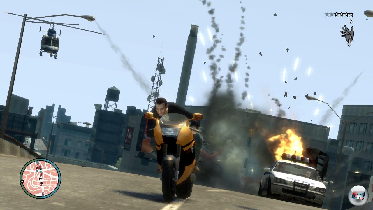 | Neben dem Auto ist das Motorrad euer wichtigstes Fortbewegungsmittel – außerdem dürft ihr noch mit Boot und Helikopter durch Liberty City brausen. |