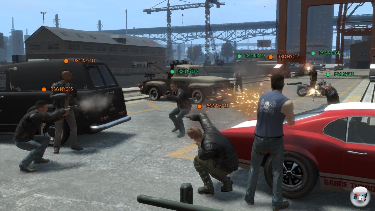 ist ein Team-Modus, in dem zwei verfeindete Gangs um strategische Punkte in der Stadt kämpfen – andere Spiele sagen »Domination« dazu. »Witness Protection« hat was von »The Hunted« beim guten alten Team Fortress Classic, denn das eine Team muss eine Personengruppe um jeden Preis schützen, das andere sie natürlich ausschalten. Sehr erfrischend ist »Chopper vs. Chopper«, in dem ein Spieler auf dem Bike möglichst viele Checkpunkte passieren muss, während ein anderer vom Helikopter aus drauflosballert. Und das ist immer noch nicht alles, denn es gibt noch mehrere Rennen sowie aufgabenbasierte Multiplayer-Varianten. Kurz gesagt: Wem die ausufernde Auswahl bereits in GTA 4 <a class="DYNLINK" onmouseover="DynToolTipp_Show('Klicken für Gameinfos‚)“ onmouseout=“DynToolTipp_Hide(); “ href=“javascript:DynCont_Display(‚Gamefinder‘,’runmod.php?sid=%7BSID%7D&LAYOUT=dyncont_gf&spielid=9777′)“>