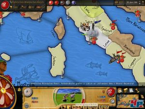 Spiele wie dieses leben auch davon, dass sich im Lauf der Zeit die Umgebung verändert, neue Völker und Technologien auftauchen. Bei Great Invasions tut sich diesbezüglich erschreckend wenig, auch wenn es beispielsweise neue Länder gibt. Wer eine der späteren Kampagnen startet, wird schnell merken, dass sich etwa bei Byzanz immer noch dieselben Speer- und Schwertkämpfer, Bogenschützen sowie Reiter tummeln, die schon bei den alten Römer durch die zweidimensionalen Lande marschierten. Jedes Volk besitzt seine paar Einheiten, die sich die Jahrhunderte über jedoch nur unwesentlich verändern. Immerhin spaltet sich wie bei Rome ab und an ein Rebellenreich ab, das dann seine eigenen Wege geht. Witzigerweise werdet ihr gefragt, ob ihr den Aufstand haben wollt. Von ihnen droht aber kaum Gefahr, da die Rebellion schon nach kurzer Dauer wieder vorbei ist, als wäre nichts gewesen.