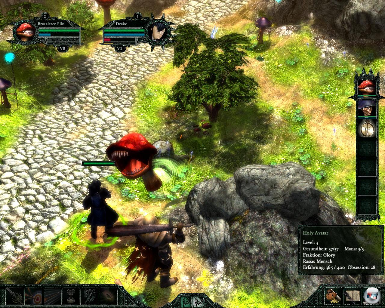 verläuft sie in etwa so vorhersehbar wie eine durchschnittliche Folge einer Vorabendserie. Einmal mehr spielt man den Helden, der wider Willen ins Abenteuer schlittert, um die Welt zu retten. Es droht eine Invasion des Bösen, das hier Dark Church heißt. Doch zu Beginn hat Drake noch andere Probleme, denn er will sich das Leben nehmen: Der schwermütige Heroe ist durch die Prüfung gerasselt. Doch gerade als er sich einem Pilz als Mahlzeit anbieten will, wird er gerettet. Er trifft auf ein paar Soldaten, die nach einer verlorenen Schlacht den Tod suchen. Als die noch um den Pilz zanken, tritt plötzlich eine Lichtgestalt hinzu, die alle aus der Lethargie reißt – der göttliche Holy Avatar.