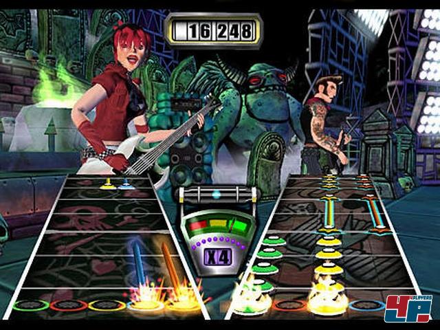 | Im Ko-Op-Modus übernimmt einer z.B. die Rhythmus- und einer die Lead-Gitarre, aber beide spielen auf ein gemeinsames Punktekonto! |