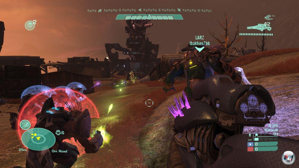 Ein wahres Highlight ist wieder der in ODST eingeführte Arcade-Modus »Feuergefecht«, in welchem eine Gegnerwelle nach der anderen die bis zu vier Spartans überrennt. Am meisten Spaß macht die Massenschlacht natürlich zu viert. Neuerdings bin ich endlich nicht mehr darauf angewiesen, dass meine Freunde online sind, denn in Reach kann ich mir per Spielersuche Mitstreiter vermitteln lassen.