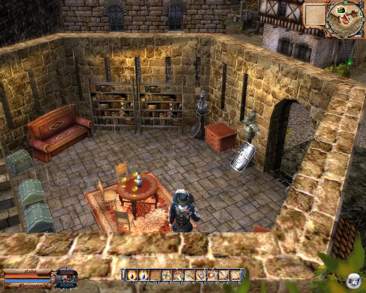 Wieso tue ich mir das an? Weil es selbst die teils Grauen erregende Kampfmechanik, die auch Gefechte hoch zu Ross erlaubt, nicht schafft, die Qualität der Geschichte zu vernichten. Ja: Die Kämpfe sind ein nicht zu unterschätzender Bestandteil von HG – sollten sie in einem action-orientierten Rollenspiel auch. Doch für „Kloppmist“ bietet die Saga eine erstaunlich verzweigte, überraschende und spannende Geschichte, bei der deutlich wird, dass hier ähnlich wie bei Ataris The Witcher ein Buch als Vorlage für ein interessantes Universum hergehalten hat. Die mittelalterliche Fantasy-Welt, die ähnlich wie in Arcanum Schauplatz eines Kampfes zwischen Technologie und Feudalkultur ist, lässt mich als Spieler immer wieder im Ungewissen, was jetzt „Gut“ oder was „Böse“ ist. Und letztlich scheint alles sowieso nur eine Grauzone zu sein, was nicht nur durch den verwirrenden und verwirrten Helden versinnbildlicht zu sein scheint, der im Laufe der Zeit mit Technologie und gottgleicher Macht konfrontiert wird.
