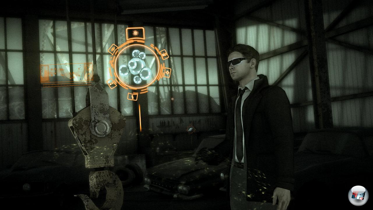 Es gibt auch Situationen, in denen man sich etwas mehr geografische und investigative Freiheit gewünscht hätte: Als man z.B. als FBI-Profiler einen möglichen Ort identifiziert, an dem der Täter vielleicht seine Origami-Vorlagen eingekauft hat, darf man diesen nicht besuchen. Warum kann man den Laden nicht untersuchen? Es gibt (bis auf eine Situation im Finale) nie eine Art Karte, auf der man eine Route oder ein Ziel auswählen kann – dieser Hauch von Open World à la Shenmue <a class="DYNLINK" onmouseover="DynToolTipp_Show('Klicken für Gameinfos‚)“ onmouseout=“DynToolTipp_Hide(); “ href=“javascript:DynCont_Display(‚Gamefinder‘,’runmod.php?sid=%7BSID%7D&LAYOUT=dyncont_gf&spielid=548′)“> und etwas mehr eigene Ermittlungslogik über klassische Rätsel hätte Heavy Rain vielleicht noch faszinierender gemacht. Es gibt ja den visuell eindrucksvollen Ansatz dazu: Norman sammelt mit seinem virtuellen Analysetool ARI („Added Reality Interface“) Indizien und Gegenstände, kann Reifenspuren analysieren, Filme auswerten und Karteien durchforsten. Aber all das läuft eher automatisch ab, denn er muss die Fakten nicht wie in CSI logisch verknüpfen.