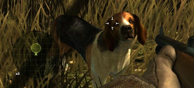 Hauptaufgabe in den Jagdgebieten ist der Abschuss einer bestimmten Beute, entweder einzelnes Großwild oder viele Enten, Kaninchen oder Fasane. Dazu müssen zunächst Spuren „gefunden“ werden, die auf der Minikarte idiotensicher markiert sind. Habe ich die grell grünen Lupenicons untersucht, muss ich aufploppenden Markern folgen, bis ich entweder eine neue Spur finde oder das Zielgebiet erreicht habe. Hier muss ich mich an meine Beute „anpirschen“. Diese ist aber scheinbar taub, blind und hat die Nase gerade in eine Dose mit Ammoniak gehalten, denn die ebenfalls gut markierten Sicht- und Witterungsbereiche sind lächerlich klein. Kurz: Waidmännisches Geschick wird von mir nicht verlangt. Es geht lediglich darum, den nächsten Selbstmordfuchs abzuballern, der einem einfach so vor die Füße läuft, und danach den Anzeigen auf der Karte zu folgen. Und wo führen die hin? Zum blinden Rehbock.