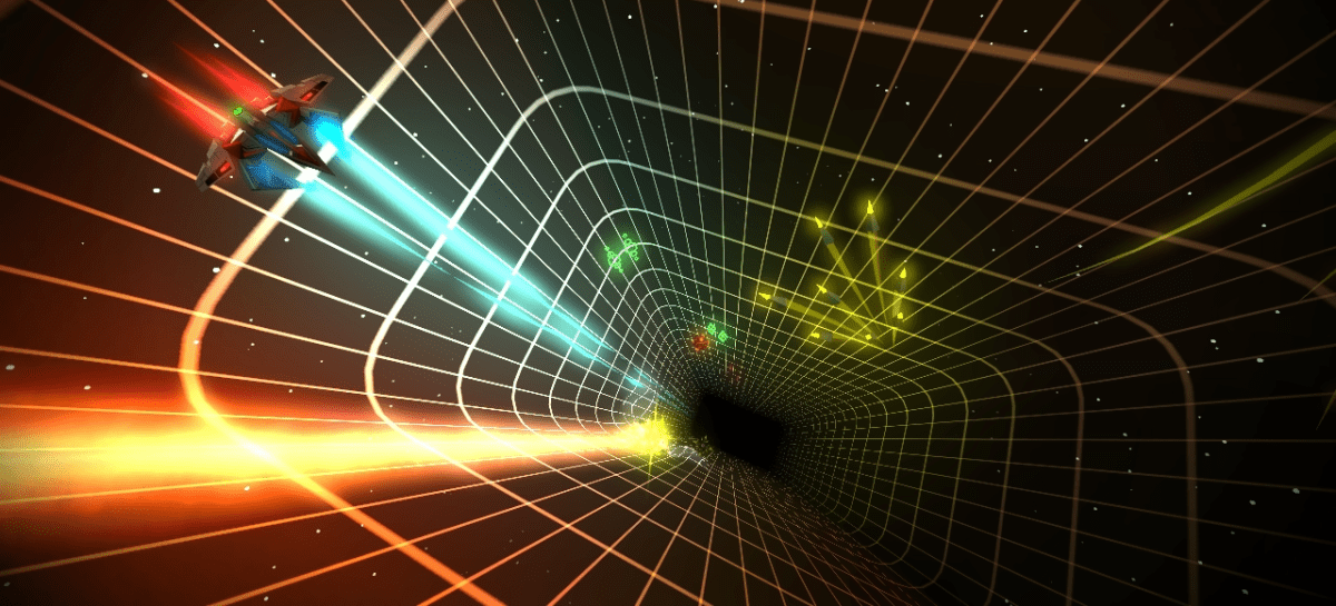 Wenn schon TxK nicht auf die PS4 kommt, müssen eben andere Entwickler Abhilfe schaffen: Auch im Arcade-Shooter Hyper Void der Brüder Bahnassi aus Montreal düst man durch bunt blitzende Weltraumröhren. Eine gelungene Hommage?