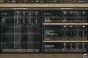 irgendwann im heiratsfähigen Alter ist und vermählt werden kann – es gibt keine persönlichen Daten, keine Übersicht über die europäischen Herrscherhäuser oder Ähnliches. Es fehlt allgemein an historischen Informationen: Konnte man Rome fast noch als Nachschlagewerk für die Antike nutzen, gibt es hier noch nicht mal Zitate berühmter Herrscher im Spiel oder die Ankündigung wichtiger Ereignisse. Das politische Drumherum der Zeit geht unter, dafür wird man mit teilweise überladenen Statistiken überfordert, die kaum einen Wert haben. Es gibt unheimlich viele Tabellen und Grafiken hinsichtlich der Einnahmen, der Wirtschaft und der Entwicklung, aber sie bleiben alle nur statische Gerüste.