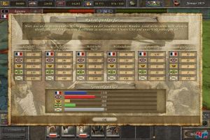 Die Diplomatie wird z.B. sehr unpersönlich präsentiert. Ihr habt zwar von der Koalition, dem Handel, der Heirat, der Militärhilfe, dem Friedensvertrag bis hin zum Durchmarschrecht und dem Söldneraufgebot sehr viele Möglichkeiten, aber ihr seht nie einen Gesprächspartner mit seinen Emotionen wie z.B. in Civilization 3 <a class="DYNLINK" onmouseover="DynToolTipp_Show('Klicken für Gameinfos‚)“ onmouseout=“DynToolTipp_Hide(); “ href=“javascript:DynCont_Display(‚Gamefinder‘,’runmod.php?sid=%7BSID%7D&LAYOUT=dyncont_gf&spielid=1079′)“>. Alles wird meist über Goldangebote abgewickelt, Napoleon und Blücher treten nie auf. In Rome konnte man das angesichts des großen historischen Zeitraums noch verschmerzen, aber hier geht es ja nur um 40 Jahre – hätte man da nicht viel leichter ein paar berühmte Herrscher integrieren können? So werden Vertragsabwicklungen zu sterilen Kalkulationen degradiert: Jeder Vertragsabschluss erhöht, jeder Misserfolg senkt eure Sympathiewerte beim Gegenüber. Dabei kann es zu skurrilen Unsinnigkeiten kommen: Man bietet Polen Holz an, sie wollen es nicht, der Wert sinkt. Man bietet ihnen weniger Holz an, sie wollen es, der Wert steigt. In der nächsten Runde erklären sie einem zur Belohnung den Krieg. Wieso, weshalb, warum? Immerhin lag der Sympathiewert bei 58. Manche Aktionen sind einfach nicht nachvollziehbar und wirken willkürlich. In anderen beweist die KI wiederum Geschick und Kalkül: Wenn ihr eure Truppen aus einer Grenzregion abzieht und eine Flanke öffnet, sollte euch der Nachbar wohl gesonnen sein, sonst marschiert er gandenlos ein.