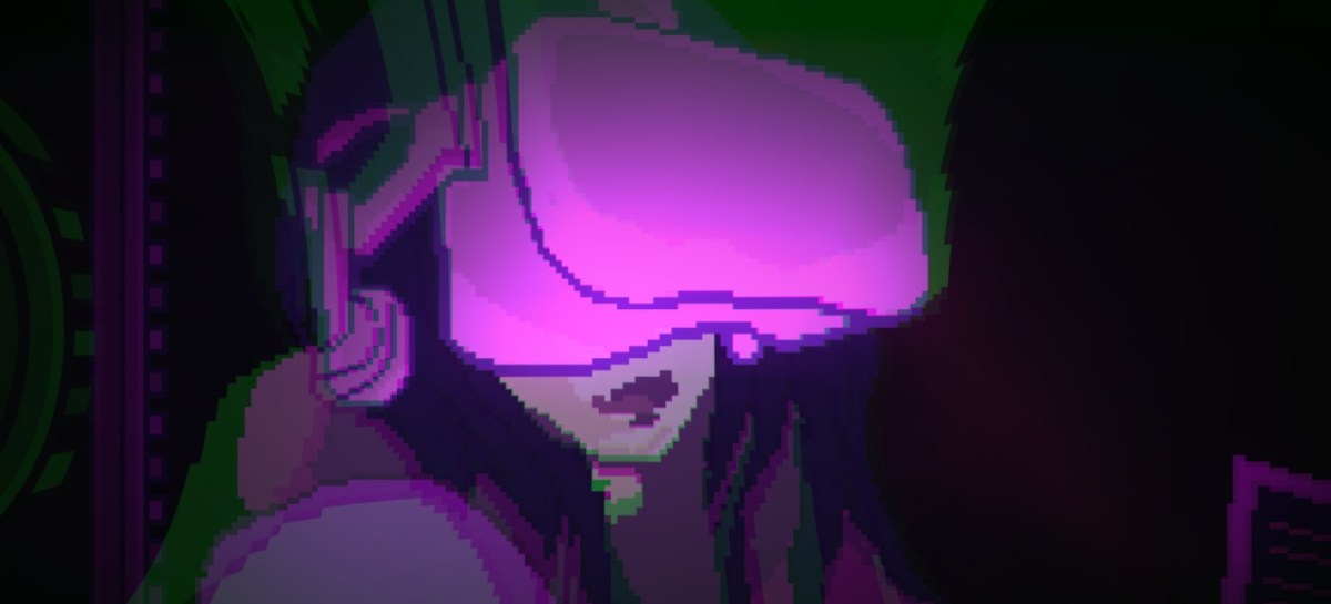Der Hintergrund für all die wundersamen Apparaturen ist die Versklavung der Menschheit durch die Naniten: Die winzigen Maschinen haben die Gehirne einiger Menschen infiziert und sich an ihre Synapsen angedockt. Nur die Protagonistin ist noch in der Lage, sich mit einem VR-Headset bewaffnet in die Köpfe der Opfer zu hacken, um sie von den außerirdisch anmutenden Technik-Parasiten zu befreien. Die fremdartigen Schmarotzer haben sich natürlich mit Mechanismen geschützt, die ein Mensch auf Anhieb nicht versteht. Erst nachdem ich auf ein paar Knöpfchen gedrückt habe, erschließen sich erste Muster: Ach so, dieser Knopf klappt den Metallsteg aus! Und danach muss ich die übrigen Schalter in der richtigen Reihenfolge aktivieren. Ein Hinweis-Diagramm dazu befindet sich auf dem anderen ausklappbaren Steg. So ergeben sich spannende Experimente, bei denen ich mich langsam voran taste und versuche, den Sinn hinter den Apparaturen zu enträtseln, während im Hintergrund entspannende Acid-, Trance- und Ambient-Klänge die Nerven besänftigen.