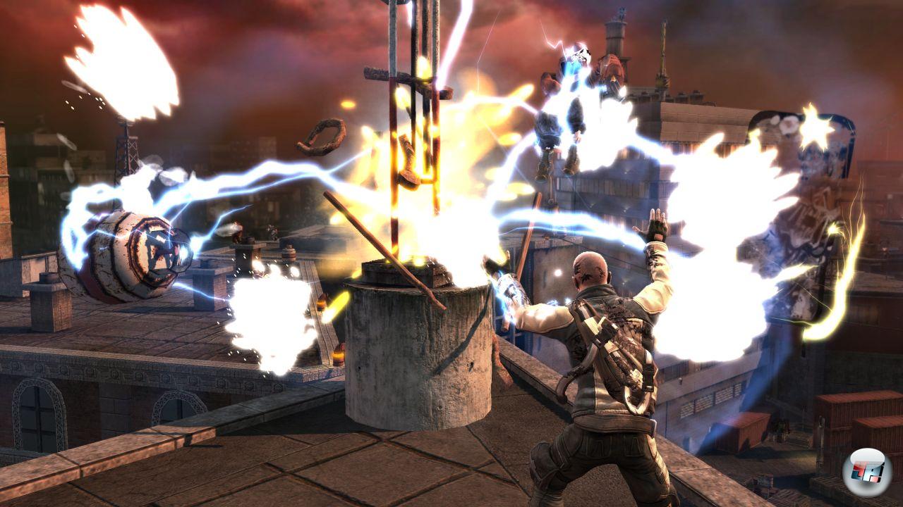 Überall hasserfüllte Blicke. Es folgen böse Flüche. Dann fliegen die ersten Flaschen und schließlich Steine. Cole würde als vogelfreier Terrorist keine Stunde in dieser fiktiven amerikanischen Stadt überleben, die seit der Quarantäne eigene Gesetze entwickelt hat – und zwar die des Stärkeren. Das ist sogar gut für den Mann, der angeblich diese verheerende Bombe platzierte, die Zehntausende das Leben kostete. Denn er hatte tatsächlich Glück im Unglück: Seit der Explosion besitzt er Macht über den Strom. Und die kann er ausnutzen.
