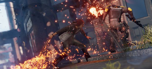 Anfangs ist es aber einfach nur verdammt cool die Sondertruppen mit Feuerbällen zu beschießen oder im Nahkampf mit einer glühenden Eisenkette zu vermöbeln. Das Suchen von Energiekisten, die mir neue Kräfte verleihen, die Befreiung von Stadtvierteln und der Kampf gegen ebenfalls mit Superkräften ausgestattete Soldaten ist abwechslungsreich und motiviert: Ich gleite mit Feuerantrieb über die Dächer, verschwinde in Lüftungsschächten und zerkloppe Suchdrohnen, um mit den verbauten Explosionssplittern meine Kräfte zu verbessern.