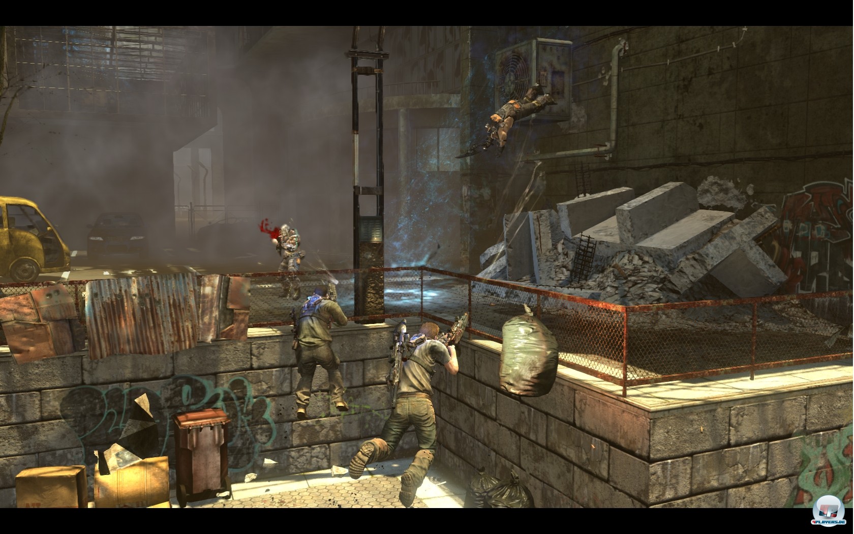 Doch mittlerweile muss man (zumindest in dieser Form) Titeln wie Gears of War, Resistance 3, BulletStorm usw. den Vortritt lassen – deutlich! Mimik, Umgebungen, Effekte: Alles passt irgendwie, zündet aber nicht so, wie man es sich wünschen würde und vor allem nicht so, wie es nötig wäre, um im Konzert der Großen mithalten zu können. Von Zeit zu Zeit kann man sich zwar auch an schick anzuschauenden Panoramen ergötzen, doch solche Momente bilden die Ausnahme. Viel häufiger bekommt man matschige Texturen, Kanten und sporadisch unzureichende Kollisionsabfrage (sprich: Clipping) zu Gesicht. Immerhin gibt sich die Engine keine Blöße, wenn es um die Bildrate geht. Weder auf der PlayStation 3 noch auf der Xbox 360 zeigt sich ein störendes Ruckeln.
