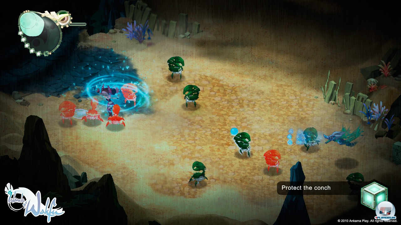 Optisch erntet Islands of Wakfu mit seinen malerischen Kulissen und putzigen Charakteren schnell Sympathiepunkte. Dass die Bewohner nur unverständliches Kauderwelsch brabbeln und die beiden Protagonisten, Kriegerin Nora und Drachenbegleiter Efrim, gänzlich stumm und entsprechend blass bleiben, ist hingegen sehr schade. [GUI_PLAYER(ID=70728,width=400,text=Der malerische Look im Dofus-Stil weiß zu gefallen.)]Auch die esoterisch angehauchte Story um skrupellose Rohstoffdiebe und ein aus den Fugen geratenes Ökosystem sorgt eher für Stirnrunzeln als für Spannung.