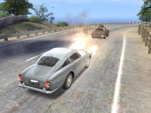 übernommen – wie z.B. das Herumhangeln an Wänden, die beeinflussbaren Nahkämpfe, die fernbedienbaren Gadgets und natürlich die Fahreinlagen. In denen cruist ihr auf linearen, aber schön anzusehenden Straßen z.B. durch das nächtliche Istanbul, lasst MGs und Raketenwerfer sprechen und haut feindliche Wagen mit einem schnellen Seitenstoß um. Leider sind diese Szenen gerade auf der PS2 nicht ruckelfrei: Zwar sinkt die Framerate nie auf unspielbare Werte, aber man spürt immer wieder, wie sie kurz in die Knie geht. Gerade wenn viele Gegner im Bild sind und mächtige Explosionen den Hintergrund erschüttern, zuckelt Bond unschön da hin. Xbox- und GameCube-Agenten haben es da schon besser, denn hier flutscht es jederzeit wie es soll. Dann kann man auch die schöne Grafik noch besser genießen, bei der sowohl Levelarchitektur als auch Figuren toll geraten sind; allen voran James Bond, der seinem Film-Pendant wie aus dem Gesicht geschnitten und toll animiert ist. Besonders erwähnenswert sind noch die wuchtigen, mächtigen Explosionen und die schönen Wassereffekte, dazu gibt es noch gute Zwischensequenzen (gerendert und Echtzeit).