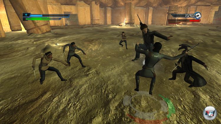 Doch auch 360-Besitzer brauchen nicht schadensfroh grinsen. Zwar ist die Bedienung deutlich handlicher und man kann bevorzugte Angriffsziele sogar dauerhaft fixieren und manuell wechseln, aber dafür kann sich die Kamera schon mal komplett verabschieden und einfach regungslos im vorherigen Raum verharren, während man sich selbst schon im nächsten befindet und von nicht sichtbaren Gegnern zu Brei gehauen wird. Doch es kommt noch schlimmer: Habt ihr das Zeitliche gesegnet, kann es durchaus passieren, dass ihr nicht am letzten Rücksetzpunkt, sondern irgendwo in einem sonst nicht zugänglichen Abschnitt des Levels wiederbelebt werdet und trotz Teleportationskräfte keine Chance habt aus dieser fatalen Sackgasse zu entkommen. Dann hilft nur noch ein manueller Spielabbruch, der euch wieder ganz an den Anfang des Levels zurückbringt.