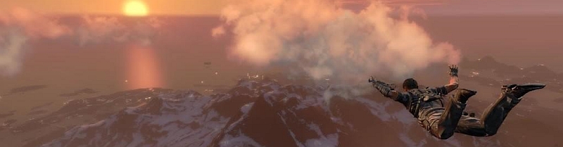 Just Cause 2 (JC2) brennt in der Anfangsphase ein Feuerwerk ab: Noch bevor man überhaupt weiß, wieso man als Rico Rodriguez sein Unwesen treibt und auf der Jagd nach seinem früheren Mentor Sheldon ist, findet man sich im Chaos wieder. Um einen herum ist gleich die Hölle los, denn alles Mögliche fliegt eindrucksvoll und aufwändig inszeniert in die Luft. Regierungstruppen begrüßen einen und verabschieden sich ebenso schnell wieder, nachdem sie mit Projektilen Bekanntschaft gemacht haben. Die Action aus Schultersicht verzichtet auf ein Deckungssystem und betont dadurch den Arcade-Charakter, der sich nicht nur durch die vollkommen überzeichnete Physik einstellt.