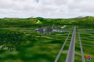 Stahlfalke in grüner Idylle? Nicht ganz: Die Grafik bietet nur ein durchschnittliches Flugpanorama.