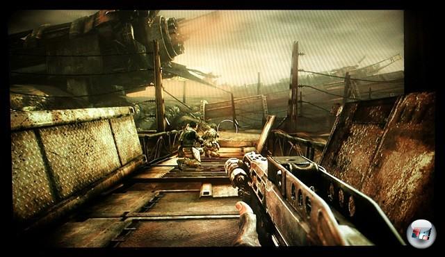 Aber Vorsicht: Auch die Helghast nutzen die Deckung! Sie verschanzen sich sehr geschickt und wechseln dabei immer wieder die Positionen. Obwohl auch sie einige vorhersehbare und genreübliche Schwächen zeigen, hinterlassen die Rotaugen einen sehr agilen Eindruck: Sie weichen bei Beschuss oder Granatenwurf aus, sie feuern auch mal überraschend blind und sie nutzen jede Gelegenheit, um euch aus der Distanz festzunageln, um dann aggressiv auf euch los zu gehen. Man hat selten das Gefühl, dass man hinter Beton in Sicherheit ist. Zwar bringt auch Killzone 2 gerade zu Beginn auch viele Feindlawinen mit durchschaubaren Auswirkungen hinsichtlich Positionierung und Kampftaktik ins Rollen, aber die werden nicht ganz so massiv abgespult wie bei Resistance 2, wo man an einigen Stellen fast überrollt wurde, nur weil man an der falschen Position stand. Hier gibt es innerhalb des Leveldesigns viel mehr alternative Routen und Umgehungsmöglichkeiten.