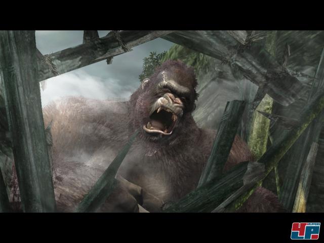 Ein sowohl optisches als auch spielerisches Highlight stellen die Begegnungen mit den mächtigen T-Rex-Sauriern (im Spiel: V-Rex) dar, denn gegen diese Kolosse ist jede Waffe machtlos. Hier besteht eure Aufgabe meist darin, die Biester abzulenken, indem ihr z.B. andere Wesen tötet, die dann quasi als „Ersatzfutter“ herhalten. Und sollten sie euch oder euren Freunden doch mal zu nahe kommen, schleudert ihr ihnen einfach einen Speer entgegen und habt zumindest kurzzeitig eure Ruhe. Dennoch sind diese Sequenzen ein gutes Beispiel für die allgemeine Stimmung des Spiels und an Spannung kaum zu überbieten. Ihr fühlt euch ständig gejagt – sei es nun von der hungrigen Fauna oder den Eingeborenen, die nicht gerne von Eindringlingen wie euch gestört werden. Und gerade diese beklemmende Atmosphäre ist es, die King Kong als Spiel auszeichnet. Die Entwickler um Michel Ancel verstehen es hervorragend, euch mitten ins Geschehen zu versetzen und erschaffen die Illusion eines riesigen Dschungels.