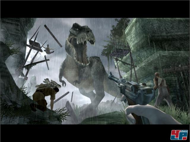 Für die größte Abwechslung sorgen allerdings die Abschnitte, in denen ihr nicht mehr als Jack unterwegs seid, sondern in die behaarte Haut des Riesenaffen schlüpft. Dabei schaltet das Spiel von der Egoperspektive in eine 3rd-Person-Ansicht um, in der ihr es mit allen Sauriern und Eingeborenen aufnehmt, die eurer geliebten Ann an die Wäsche wollen. Bis auf den letzten Abschnitt in New York ist die Kamera fest fixiert, fängt das Geschehen aber insgesamt gut ein und sorgt für kinoreife Schnitte. Besonders spektakulär sind die Finishing Moves, mit denen Kong den fast ebenbürtigen V-Rex oder den fliegenden Black Terapusmordax ein Ende bereitet, indem Flügel vom Körper gerissen oder mit Reißzähnen bestückte Kiefer gebrochen werden. Insgesamt machen die Kong-Abschnitte nur einen relativ kleinen Teil des Spiels auch, doch kommen sie immer genau zum richtigen Zeitpunkt – nämlich genau dann, wenn die Erkundungen mit Jack gerade wieder auf dem Weg sind, etwas öde zu werden. Das gesamte Abenteuer wird euch etwas über zehn Stunden beschäftigen. Um den Wiederspielwert zu steigern, könnt ihr im Anschluss die Levels alle erneut spielen und bekommt Punkte für eure Leistungen, mit denen ihr weiteres Bonusmaterial freischalten könnt. Neben dem Filmtrailer warten etliche Artworks auf euch und wer beim Zocken das gewisse Flair alter Filme erleben will, kann dazu einfach einen entsprechenden Filter freischalten.