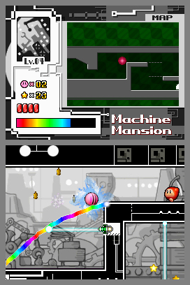 Ähnlich wie in Yoshi Touch & Go könnt ihr Linien mit dem Stift ziehen, um über Gegner zu rollen oder sie aufzuhalten. Außerdem könnt ihr euch mit dem Stylus einen Turboschub verpassen und manche Feinde bewusstlos klicken, um sie mit einer Rammattacke zu überrollen. Aber Kirby führt das Prinzip der Stiftsteuerung in eine neue Dimension, denn ihr habt innerhalb der 2D-Levels viel Freiraum: Mit