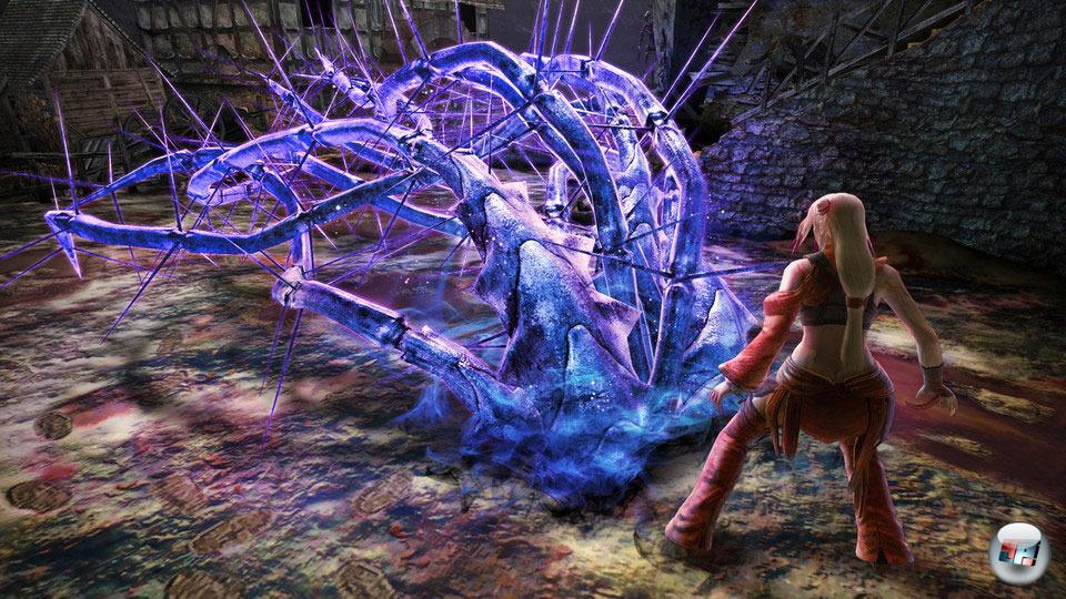 Von Zeit zu Zeit gibt es zwar vereinzelte Highlights wie Rapunzels von Haaren durchzogenen Turm, doch erst wenn man sich auf dem Weg zum Endgegner durch interdimensionäre Abschnitte schlagen muss, bei denen man mit Partikeleffekten verwöhnt wird sich hin und wieder an Bayonetta erinnert fühlt, kann die Kulisse zur Atmosphäre beitragen.