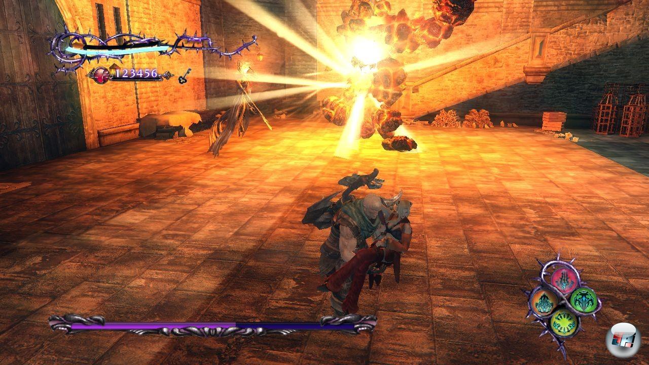 Beim Kampfsystem geht man einen deutlich konventionelleren Weg als bei der Geschichte. Letztlich sind die schwachen und starken Angriffe Heinrichs, die zusätzlich mit der Magie von Gretchen aufgepeppt werden können, nichts anderes als ein Tandemprinzip einschlägig bekannter Systeme von Dante’s Inferno über God of War bis hin zum letzten Castlevania.