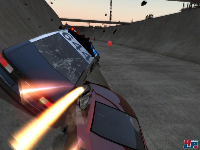 Als extrem nervig entpuppen sich schon nach kurzer Zeit die Cops, die euch zwar mit mehreren Streifenwagen verfolgen, aber sich dabei entweder richtig blöd oder rabiat verhalten, wobei das eine das andere nicht unbedingt ausschließen muss. Ein Beispiel: Ihr fahrt direkt neben einem Cop mit überhöhter Geschwindigkeit über eine rote Ampel. Keine Reaktion. An der nächsten Ampel beschließt ihr, brav anzuhalten, stoßt dabei aber minimal an der Stoßstange eures Vordermanns an. Ein Kapitalverbrechen – so scheint es – denn innerhalb kürzester Zeit kleben euch mehrere Polizeischleudern am Heck. Fahren sie euch zunächst nur gemütlich hinterher oder fahren selbst aus