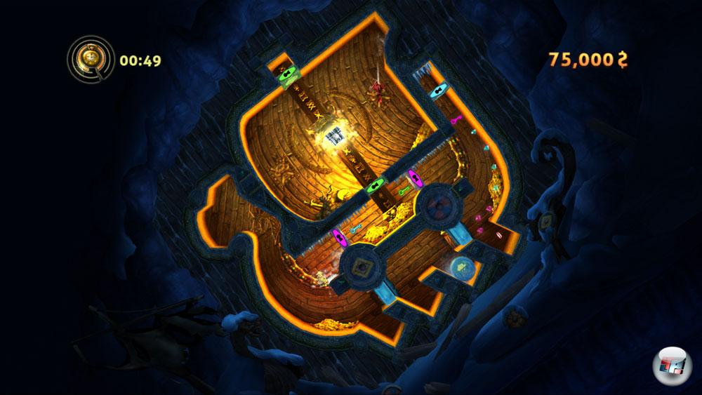kullert z.B. die dicke Indiana-Jones-Kugel aus einer Mulde und walzt einen der vermummten Grabräuber platt, während der selig vor sich hin grinsende Dr. Diggabone nur ein kleines Stückchen auf seiner Plattform nach links rutscht.![]()