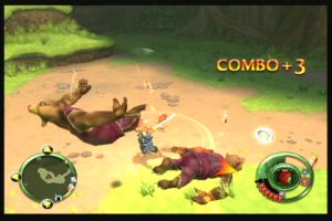 | Flugstunde für Bären: Kay kann mit seinem Katana auch größere Widersacher in die Lüfte befördern. |