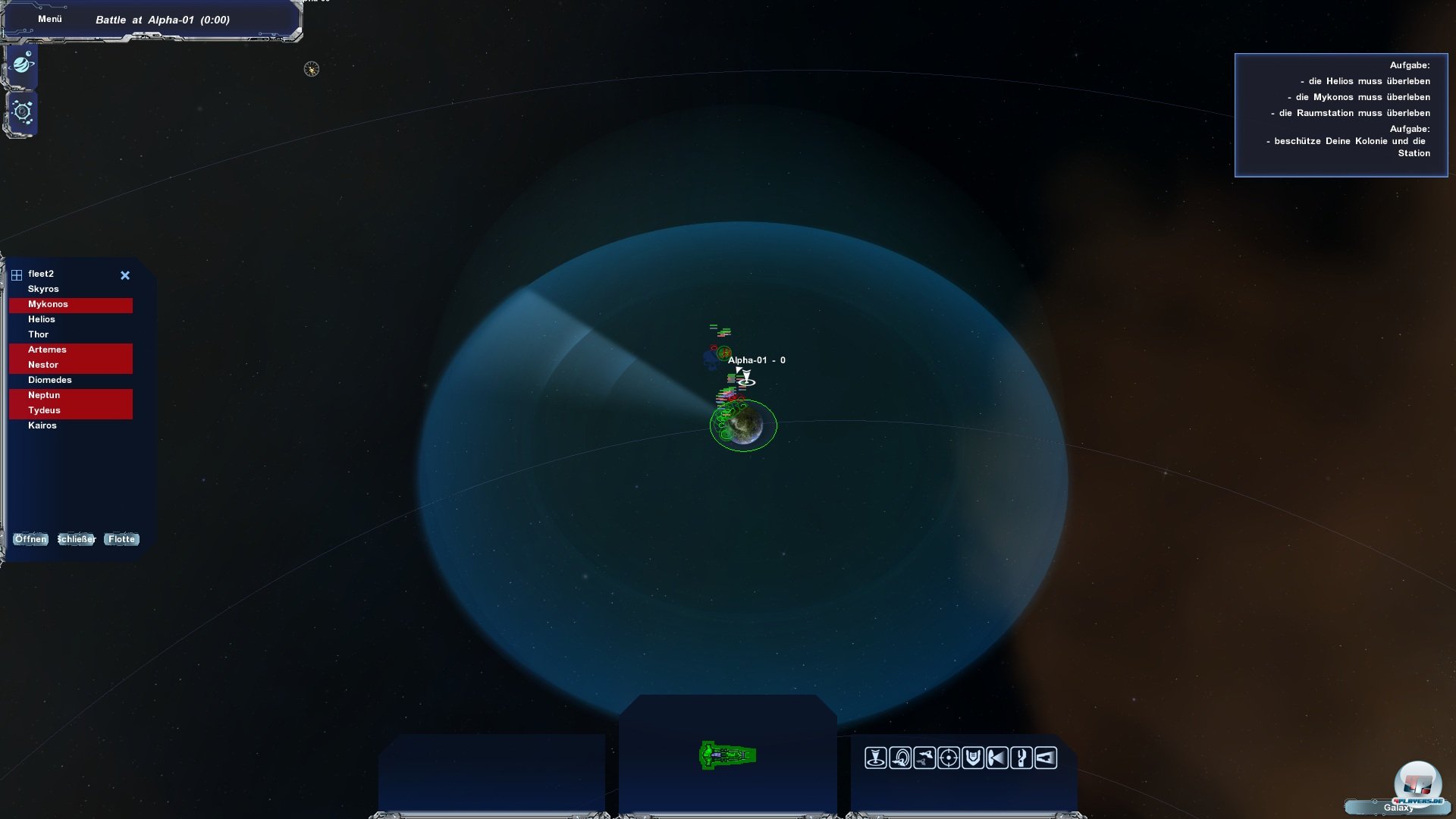 Trifft man auf eine feindliche Armada, schaltet das Spiel von selbst in den Echtzeit-Modus, der sich jederzeit pausieren lässt. Feindkontakt kommt nicht allzu oft vor, da man gerade in der freien Partie in der Regel ohne Gegner unterwegs ist. Zu Beginn kann man zwar einen wählen, später findet man ihn dann nicht mehr. Die KI kann man daher nicht als gewieft bezeichnen, da sie in der Kampagne immer nur kleckerweise antritt und man sie leicht abschießen kann. So haben die direkt auf der Planetenkarte stattfindenden Schlachten eher was mit dem ablaufenden Skript zu tun, als dass wirklich Pulverdampf zu riechen wäre. Man fühlt sich also nicht mittendrin wie bei Total War, da alles zu oberflächlich läuft.