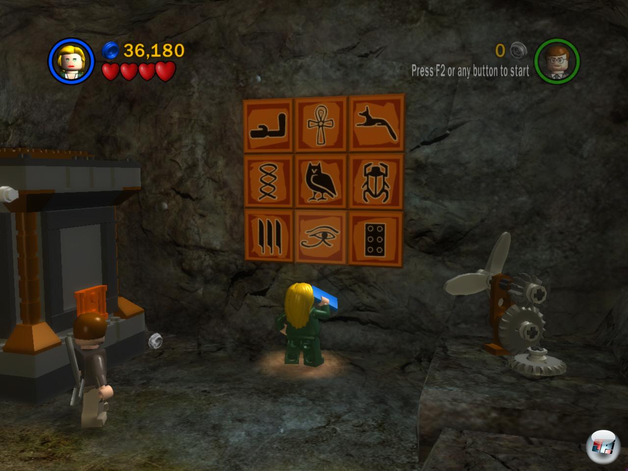 allen verfügbaren Figuren wechseln – das müsst ihr sogar, denn Indy, Marion, Shorty, Dr. Elsa Schneider, Henry Jones Sr. oder Mechaniker Jock haben allesamt Spezialeigenschaften: Mal geht es nur mittels Peitschenschwung über einen Abgrund, mal müssen Hieroglyphen in einer Art Memory-Minigame übersetzt werden, mal passt nur ein kleiner