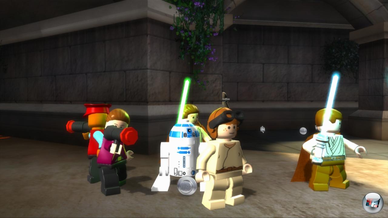 Levels erfuhren einen dezenten Feinschliff – und ganz besonders die vormals gelegentlich nervenden Flugabschnitte wurden entschärft. Wii-Spieler kommen außerdem in den Genuss einer witzigen Fuchtel-Steuerung, mit der sie die Lichtschwert-Attacken auslösen. Nicht missverstehen, es ist nicht so, dass echte Handbewegungen auf den Klotz-Jedi übertragen werden – stattdessen werden die normalen Kampfbewegungen ausgeführt. Aber das Ganze funktioniert wunderbar einfach, darüber hinaus habt ihr auch die Wahl: Wenn ihr kein Interesse an Schwingerei habt, steuert ihr die Figuren ganz normal digital, woraufhin mit dem B-Knopf zugehauen wird.![]()
