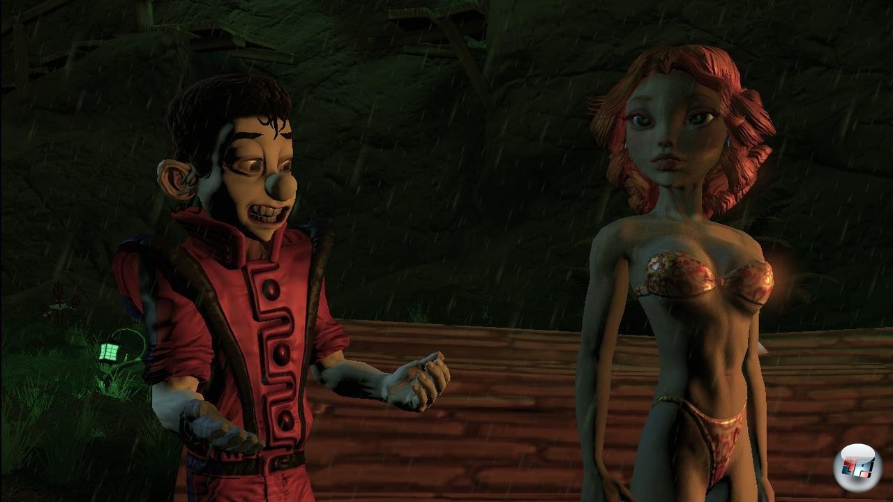 Gehen wir zunächst mal auf den ersten Punkt ein, denn der ist schneller abgehandelt: Obgleich Team 17 die bekanntermaßen absolut leistungsfähige Unreal Engine nutzt, ist das Spiel in erster Linie ein leuchtendes Beispiel dafür, was man alles in der Grafikentwicklung falsch machen kann. In der Tat wirkt das Gezeigte wie ein Komplettpaket: Es ruckelt wie die Hölle, fieses Tearing zerreißt das Bild am laufenden Bande (zumindest auf 360 und PS3 – am PC lässt sich VSync aktivieren) und die Texturen ploppen in gefühlten zehn Metern Entfernung aus dem Nichts. Genau genommen aus dem nicht mal bilinear gefilterten Nichts, so dass im Hintergrund tatsächlich deutlich sichtbar seit vielen Jahren nicht mehr für möglich gehaltene Monsterpixel lauern! Respekt. Aber das ist ja noch nicht mal das Schlimmste, denn der Comicstil der Umgebung ist ja trotz der technischen Unverschämtheiten ein wirklich netter. Ganz im Gegensatz dazu sind die Figuren einfach nur Gift für die Augen. Ich finde keine Erklärung für diese… diese… Wesen, deren Pferdezähne chromsilbern glänzen, deren Schatten krümeliger sind als Streuselkuchen (aber gleichzeitig ein mysteriöses und enorm irritierendes Glitzern hervorzaubern) und deren Proportionen… ach, was rege ich mich darüber auf? Ich mache es kurz: Der Horror-Level ist der einzige Abschnitt des Spiels, in den die Figuren tatsächlich passen. Ansonsten ist das Gezeigte einfach nur er- und abschreckend. Muss ich noch erwähnen, dass die innerhalb von Gebäuden nicht verstellbare Kameraführung eine Qual ist? Oder dass die Ladezeiten dem berechneten Ergebnis zum Trotz bemerkenswert lang sind?