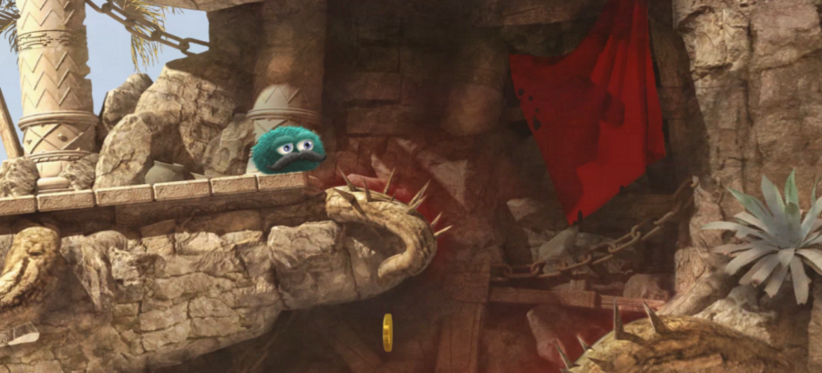 Je länger man mit dem kleinen blauen Plüschball in den gestochen scharfen Touchwelten durch idyllische Wälder, überflutete Keller und flirrende Wüsten unterwegs ist, desto unterhaltsamer wird das Abenteuer. Auch wenn die über fünf Akte erzählte Story um einen mysteriösen Dieb eher kitschig als spannend ist, wird sie zumindest charmant inkl. englischer Sprachausgabe präsentiert. Warum man all die Goldmünzen einsammeln soll, ist aber letztlich wurscht. Zunächst freut man sich einfach nur über diese toll beleuchteten, wunderschön gemalten Kulissen.