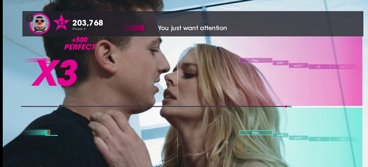 Schön dagegen, dass nicht nur die Original-Musikvideos geboten werden, sondern sich bei manchen Tracks auch die Gesangsspur optional ausblenden lässt. Leider steht die Funktion aber nur bei einer relativ kleinen Auswahl der Songs zur Verfügung und muss zudem erst für jeden einzelnen freigespielt werden. Immerhin werden neben gängigen USB-Mikrofonen auch die SingStar-Modelle unterstützt – egal ob kabelgebunden oder die Funk-Varianten. Mit der entsprechenden App darf man zudem seine Smartphones in Mikros verwandeln und mit dem Spiel verbinden, sofern mindestens das Betriebssystem Android 4.0 bzw. iOS 7 verwendet wird. Das funktioniert ähnlich gut wie mit echten Mikrofonen, doch muss man für eine akzeptable Erfassung relativ laut ins Handy hinein brüllen. Wer alleine vor dem Bildschirm sitzt, aber trotzdem eine Herausforderung sucht, darf die vakanten Plätze mit bis zu drei KI-Sängern füllen, deren Können man allerdings nicht anpassen darf. Insgesamt stellen diese so genannten „Voxler“ aber keine große Gefahr für den Sieg dar.