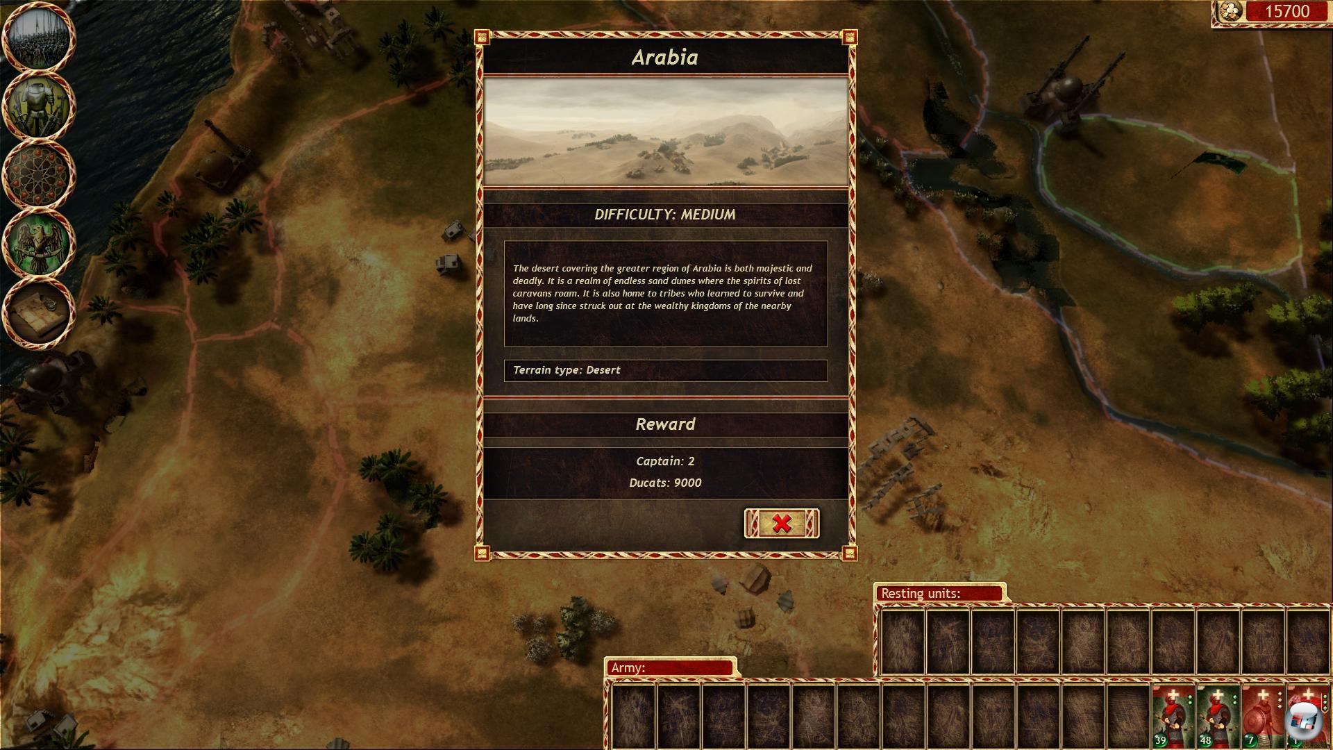 Dieses Mal darf man auch die Sarazenen spielen, die eine eigene Kampagne haben. Diese lässt sich von Anfang an etwas freier an, läuft sozusagen entgegengesetzt und beginnt in Babylon, wo man gegen Aufständische kämpft, die -warum auch immer- Kreuzritter sind. Vermutlich gibt es sonst gar keine Einheiten, die die Feinde spielen könnten. Danach kann man sogar wählen, ob man als Saladin lieber Arabien, Mesopotamien oder Armenien angreifen will. Die Einheiten unterscheiden sich sogar ein bisschen, denn die Muslime führen weniger gepanzerte Truppen, sondern eher leichte Kämpfer und Reiter ins Gefecht.