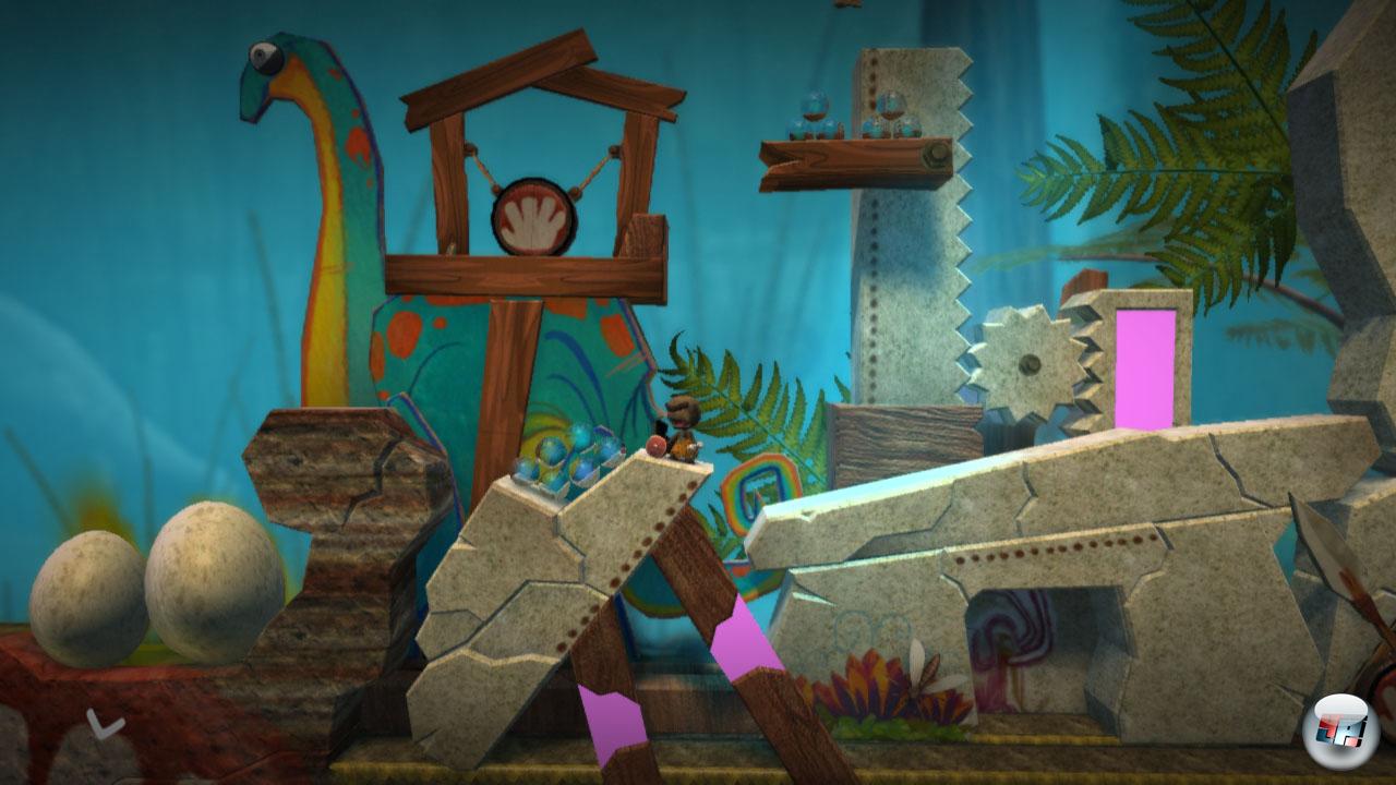 | Nach wie vor wechselt Sackboy zwischen drei hintereinander liegenden Ebenen. Dabei kommt es seltener zu Problemen als in Teil 1. |