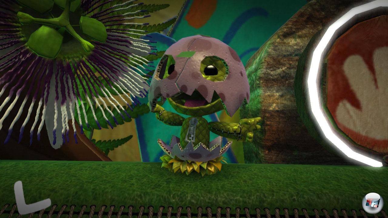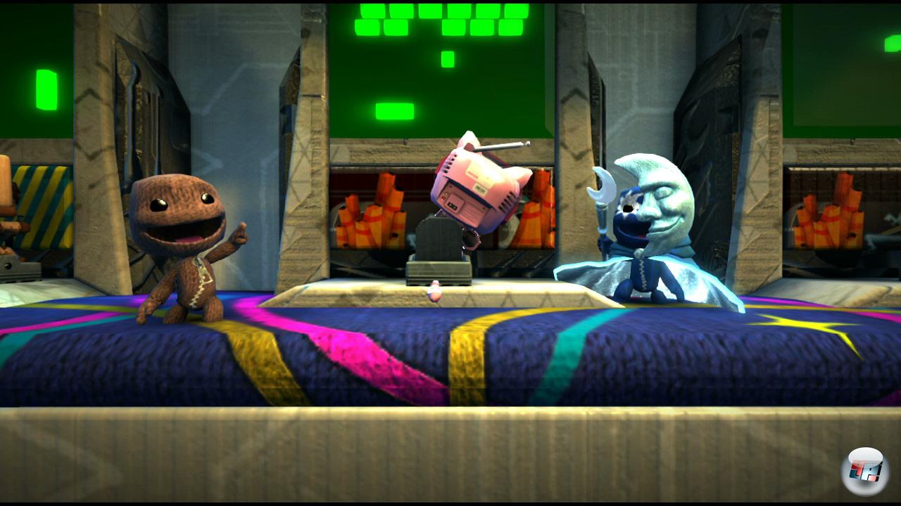 vor allem, wenn man mit einem Freund um die Wette durch den Raum düst. Bis zu vier Spieler dürfen on- oder offline kooperativ durch Sackboys Welt springen. Manche Herausforderungen erfordern Teamwork, die Versus-Levels dagegen sind auf Konkurrenzkampf um den schnellsten Zieleinlauf oder die Höchstpunktzahl ausgelegt.