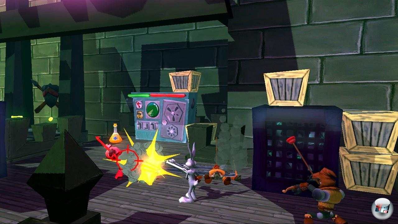 Woran denkt man beim Stichwort »Looney Tunes«? Jüngere Spieler würden wohl sofort »Apple!« rufen, aber alle, die mit Bugs Bunny & Konsorten groß geworden sind, dürften selige Erinnerungen an Zeiten haben, in denen Cartoons nicht auf Brecheisen komm raus politisch korrekt sein mussten – damals gab es herrlich unverschämte, quietschbunte Slapstick-Action. Und wie beginnt ACME Arsenal? In einem Level, der so dunkel ist wie das Gesicht von Marsmensch Marvin.