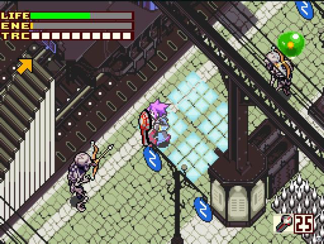 Überaus nützlich ist auch ein Besuch des Info-Händlers, der eine Monsterbibliothek führt und euch dort z.B. erklärt, dass ein „Chloroformer“ dem Element Dunkelheit angehört und durch das Saugen von Blut angreift. Also solltet ihr dieses Wesen möglichst mit Aarons Lichtpistole angreifen! Es gibt sechs Kategorien von Monstern, von einfachen Skeletten ohne Elementzugehörigkeit über Vermehrungskreaturen, Patrouilleläufer wie Hunde und Mittelbosse wie den Ameisenlöwen bis hin zu den sieben Bossen wie Vampirfürst Rymer.