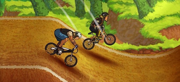 Wie im Vorgänger rolle und springe ich von links nach rechts über huckelige Geländepisten, um möglichst schnell über die Ziellinie zu brettern, während im Hintergrund aufgedrehter Fun-Punk schrammelt. Diesmal gibt es allerdings mehr zu tun. Statt nur das Gewicht zu verlagern, sorge ich mit kurzen Fingerstrichen über das rechte Bildschirmdrittel dafür, dass Sprünge und Landungen besser gelingen. Auch Front- und Backflips lassen sich mit fein dosierten Fingergesten auslösen – als Belohnung strampelt mein Biker ein paar Sekunden lang etwas schneller. Der linke Daumen ist nur für den Antrieb zuständig. Halte ich ihn auf dem linken Drittel, tritt mein Fahrer in die Pedale.
