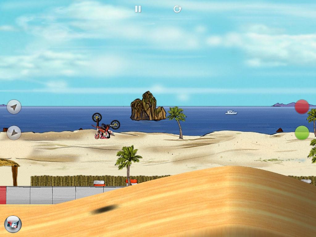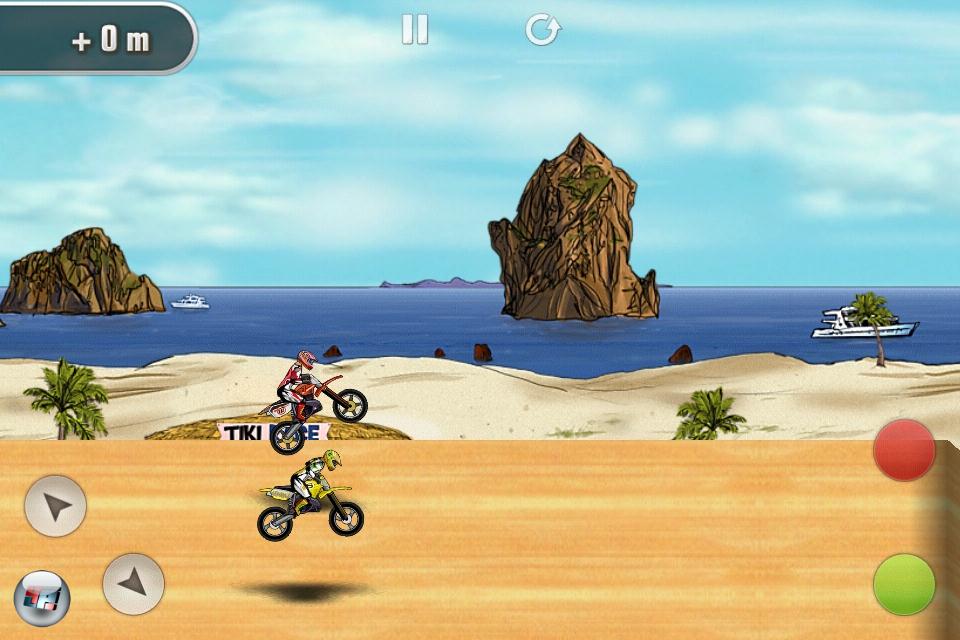 Neben dem Arcade-Modus darf man sich auch an Zeitrennen versuchen. Hier werden pro Strecke die fünf besten Zeiten gesichert, komplett mit Replays, die man »herausfordern« darf, um sich selbst ins Gesicht lachen zu können. Da das mit anderen mehr Spaß macht, ist Ähnliches auch mit der Freundesliste möglich – die allerdings gegenwärtig noch auf das umständliche OpenFeint-System und nicht Apples Game Center setzt. Einen richtigen Mehrspielermodus wie beim Konkurrenten Motocross Challenge gibt es leider nicht. Auch dass man immer nur gegen einen Konkurrenten unterwegs ist, wirkt etwas lieblos – selbst bei Excitebike war auf der Strecke mehr los. Technisch besticht MSMX vor allem durch die Physik; die Grafik selbst ist nett, aber mehr auch nicht. Die Steuerung funktioniert auf jeder Plattform wunderbar präzise und eingängig, allerdings haben iPad-Spieler (MSMX ist eine Universal App) gegenwärtig noch mit dämlicher Knopf-Platzierung zu kämpfen: Die Buttons liegen genau mittig auf dem großen Bildschirm. Die Entwickler haben für das nächste Update aber schon eine freie Platzierung der Bedienung versprochen.