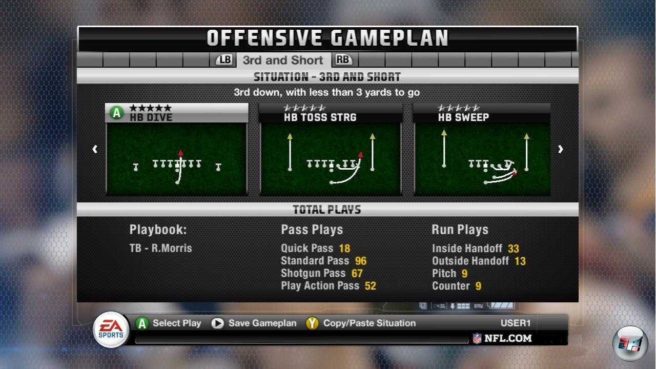 Denn einerseits kann man natürlich weiterhin auf die konventionelle Auswahl zugreifen. Und andererseits kann man die Zeit nun damit verbringen, die Vorauswahl zu treffen, aus der der Coach situationsbedingt die Spielvariante „zieht“ und an einen weitergibt. Mit über 20 offensiven sowie defensiven Situationen, die mit jeweils zwischen einem und 15 priorisierbaren Spielzügen bestückt werden können, ist man beschäftigt, wenn man das Spiel komplett auf seine Quarterback-Bedürfnisse zuschneiden möchte.