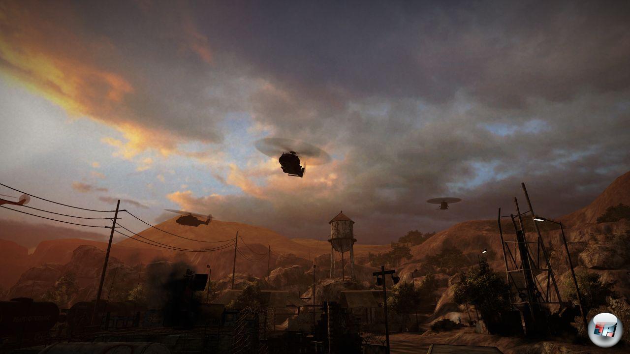 Ja, es läuft flüssig – meistens. Rekordverdächtige 256 Spieler wuseln im PS3-exklusiven Ego-Shooter MAG übers Schlachtfeld. Damit durch die schiere Menge an Soldaten nicht heilloses Chaos ausbricht, hat Socom-Entwickler Zipper Interactive seinem Scharmützel eine strenge Organisationsstruktur verpasst: Acht Spieler bilden ein Squad, vier Squads ein Platoon und – zumindest im größten Spielmodus – vier Platoons ein Team. Doch wichtiger als die Hierarchie ist, wie gut die Soldaten in ihren Squads zusammenarbeiten.