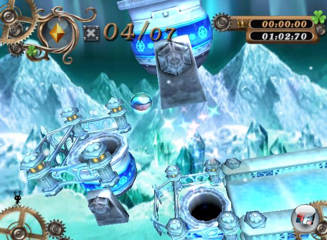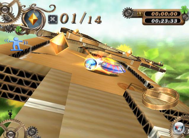 Wenn man seine Kugel durch jede noch so kleine ausgeklügelte Abkürzung schnipst und eine neue Bestzeit einfährt, ist das mitunter fast so befriedigend wie in einem guten Arcade-Racer. Häufig muss man den Controller sogar komplett auf den Kopf stellen und die Kugel auf der Unterseite der Plattform balancieren. Oder man reißt ihn bei einem Absturz in einem Akt der Verzweiflung zur Seite und bugsiert die fallende Murmel doch noch zurück auf die rettende Plattform. All zu forsch darf man übrigens nicht abkürzen: Bevor man ins rettende Ziel rollt, müssen zunächst einmal sämtliche Edelsteine eingesammelt werden. Zusätzlich warten noch ein paar versteckte Exemplare auf ihren Entdecker.