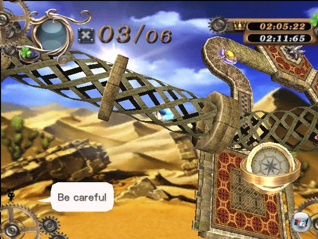 Durch die neue Steuerungs-Variante tritt allerdings ein weiteres Manko auf: Wenn die Fernbedienung stark gekippt wird, dreht sich mitunter die Kamera zur Seite weg. Sobald man die Macke kennt, kann man sie aber durch präzise Bewegungen in den Griff bekommen. Für Verwirrung sorgen zu Beginn auch die neuen Kanonen, welche die Kugel nach einer Sekunde wieder ausspucken. Doch wenn man auf die kleine Wasserwaage am rechten unteren Bildrand achtet, lässt sich die Welt auch in solchen Situationen passend ausrichten.