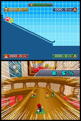 Diesmal sind ganze 70 Exemplare vertreten. Die Auswahl reicht von einfachen Button-Masher-Disziplinen über 3D-Rennspiele auf Asphalt, Wasser und einer Rutsche bis hin zu einem Spritzpistolen-Egoshooter auf einem kugelrunden Planeten wie in Super Mario Galaxy.