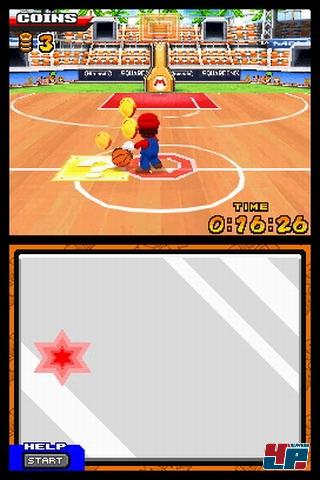 Wer jedoch einfach so ohne Training oder die Sicherheit der Buttons loslegt, wird sich zunächst wundern, warum einem die Gegner den Ball durch die Nase ziehen – der Stift bietet sehr viele Manöver, verlangt aber Eingewöhnung. Mario Basketball ist zwar zu Beginn der Turniere sehr einfach, wenn man mit klassischen Buttons spielt, aber erstens bieten diese nicht alle Finessen der Stiftsteuerung (das Abschirmen fehlt; Dribblings sind langsamer etc.), zweitens sind die Gegner spätestens gegen Turnierende richtig harte Nüsse und extrem sammelwütig. Im Gegensatz zum echten Basketball zählen hier nämlich auch die Münzen, die ihr beim Dribbeln über Sternfelder oder Spezialdunkings ergattern könnt als Punkte – es sei denn, ihr schaltet auf die klassische 2er- und 3er-Zählung um.