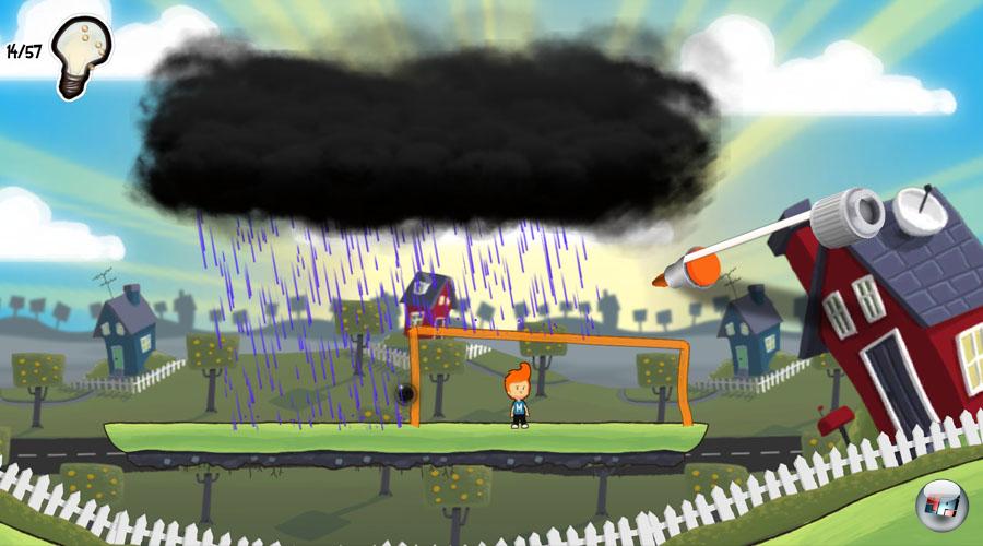 Der Abgrund ist zu breit, um ihn per Sprung zu überqueren? Einfach einen Strich über den tödlichen Schlund gezogen und Max kommt gefahrlos ans andere Ufer. Die Wippe benötigt ein Gewicht, um Max in die Höhe zu katapultieren? Dann malt man sich einfach einen Stein, den man aus der Höhe fallen lässt.